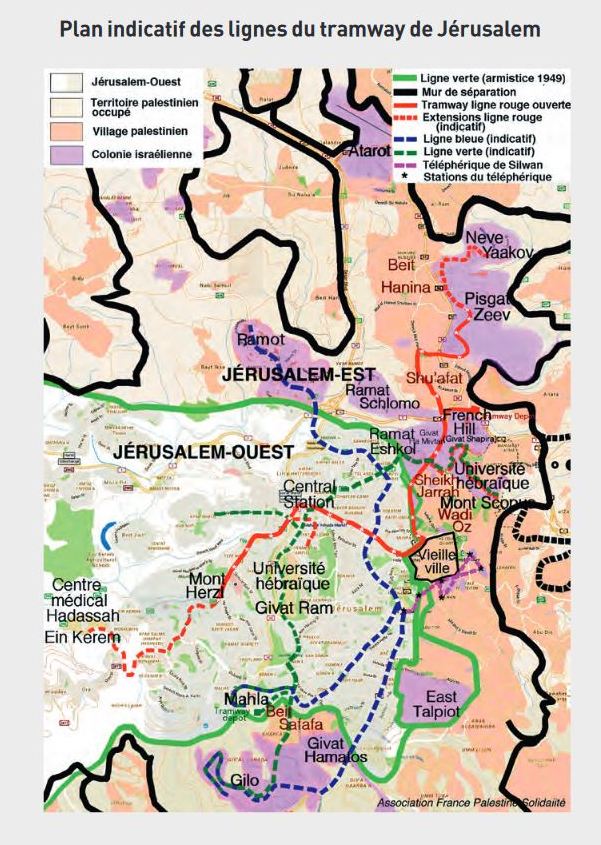 Ce qui est inadmissible dans ce tramway est qu’il tisse des réseaux de transport entre les colonies du nord, du sud, de l’est et de l’ouest avec le centre de la ville. Et il fait de la métropole une réalité. Et qu’on ne me dise pas qu’on ne peut pas arrêter les entreprises françaises. Il y a dix ans il y a eu un procès contre Alstom et Veolia pour le premier rail et maintenant il s’agit de sociétés à fonds publics, semi-étatiques : Egis-Rail et Systra, filiales du groupe Egis. L’Etat français possède 75 % du capital des deux sociétés. Et après vous me dites qu’ils ne reconnaissent pas Jérusalem ? Quelle importance ont les déclarations verbales si elles sont contredites dans les faits ? Ils sont en train de donner à Nétanyahou et à la droite israélienne les moyens concrets de relier toutes les colonies à la ville et d’en faire une seule et même immense colonie exclusivement juive. Les Israéliens entendent provoquer chez les Palestiniens ce qu’ils appellent le « self-transfer » : à force de harcèlement, privés de travail, d’écoles, d’hôpitaux par le mur de séparation, taxés trois fois plus que les juifs, les habitants palestiniens s’en iront d’eux-mêmes, et cela aura le même résultat que l’expulsion.