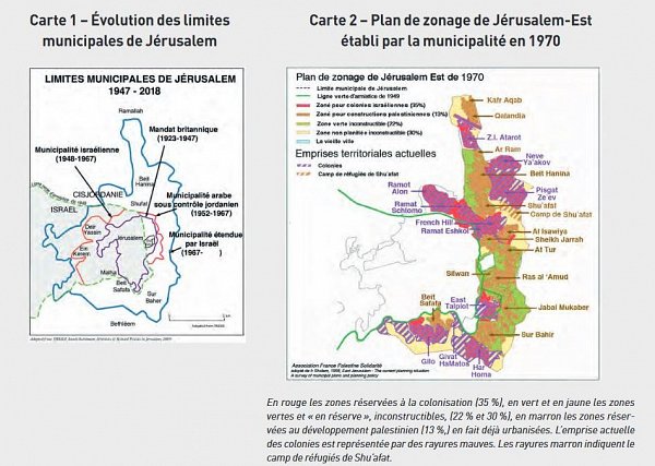 Mais que vaut un État palestinien sans Jérusalem alors même que Trump a déjà décidé du sort de la Ville sainte ? Il est inexistant. En fait, les Israéliens veulent créer une « Jérusalem métropolitaine », c’est pour cela qu’ils ont construit depuis 1967 ans toutes ces colonies tout autour de la ville sainte (cf. carte), avec Maale Adoumim à l’est, tout le bloc Gush Etzion au sud, tout le bloc au nord avec Psagot et Pisgat Zeev et toute la route autour. Et ils vont repousser la frontière. Toujours dans leur obsession démographique, ils vont installer un demi-million de citoyens juifs autour de 300 000 Palestiniens chrétiens et musulmans. Et vous croyez que ceux- là pourront survivre ? Ils vont être asphyxiés dans un ghetto et le demi- million de juifs sera surtout composé de colons ou de religieux. À Jérusalem il y a énormément de religieux. La moitié d’Israël consistera en cette Jérusalem métropolitaine (cf carte).